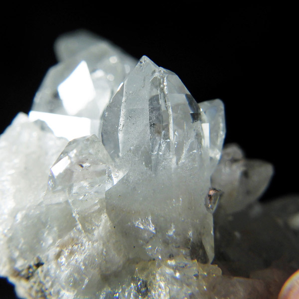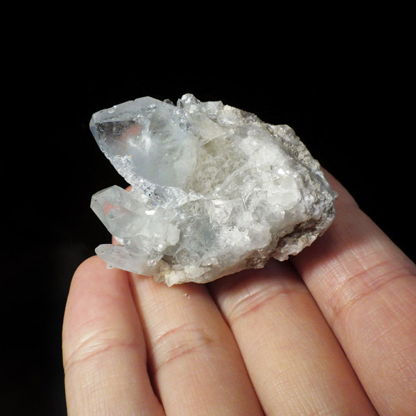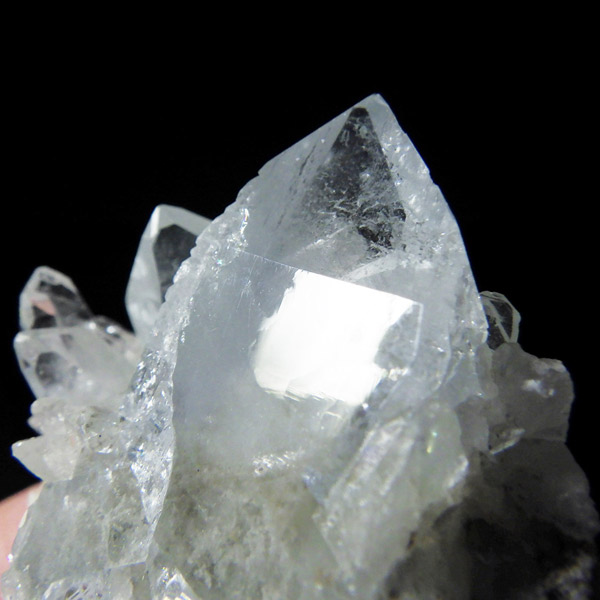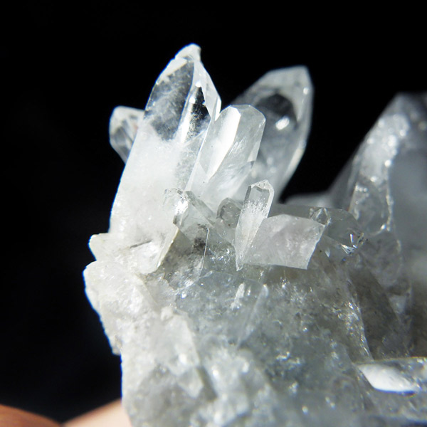 マダガスカル産のセレスタイトクラスターです。澄んだカラーのセレスタイトで、写真では分かりづらいですが、表面はとても艶々で照りが凄いです。 エッジの効いた結晶の形がきれいに出ており、透明度抜群のフォルムで非常に魅力的です。大きい結晶も小さい結晶も味わえ、虹も少々見えますし、ピュアなクリアさで見れば見るほどかわいい原石です。