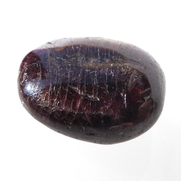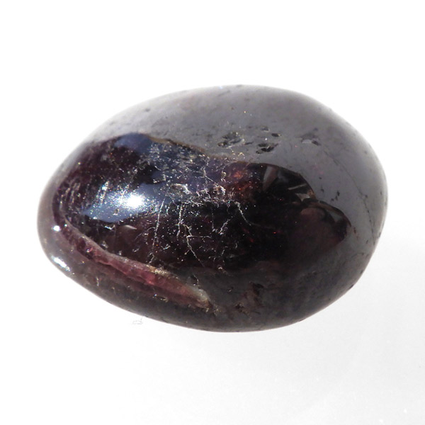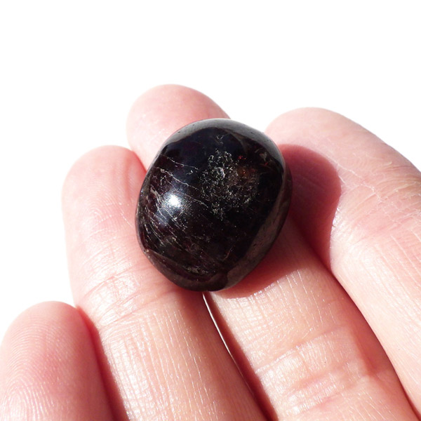 ブラジル産のガーネット、タンブルです。ガーネット族のアルマンディンという種類。一見すると黒っぽい石ですが、光に透かすととても美しい赤色を示します。内に秘めた情熱の赤といった印象でしょうか。ガーネットのアクティブなエネルギーは多くの場面で背中を押してくれる積極性の象徴とされています。