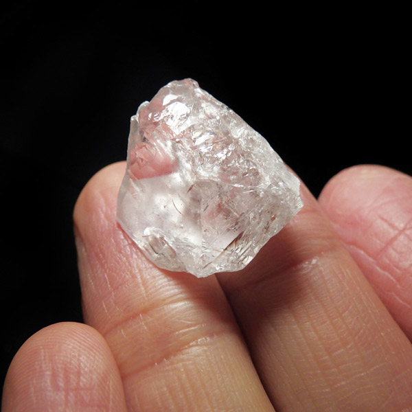 メキシコ産、ダンビュライトの原石です。 ダンビュライトはダイヤモンドの代用品として使われることもある石で、結晶の形はトパーズそっくりです。縦に伸びる表面の条線がくっきり見られ、透明度と輝きは美しいの一言。レインボーも含まれ、基本的に透明ですが、僅かにほんのりとピンク色をしています。お手頃なサイズの原石ですが見ごたえのある高品質な一点です。