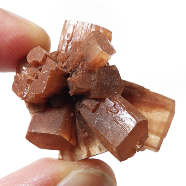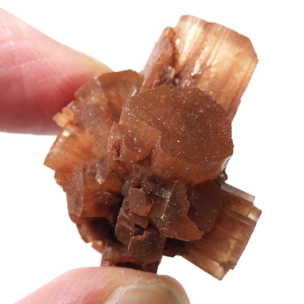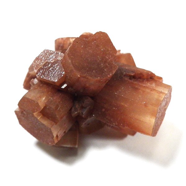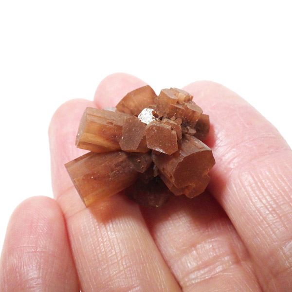 モロッコ産、アラゴナイト原石です。アラゴナイトは、最初はスペインのアラゴン地方で採れたのが名前の由来です。美しい六角柱の結晶の放射状の集合体。色味は半透明の結晶の表面に褐色が乗っている様相です。結晶の形がかわい魅力的な鉱物です。