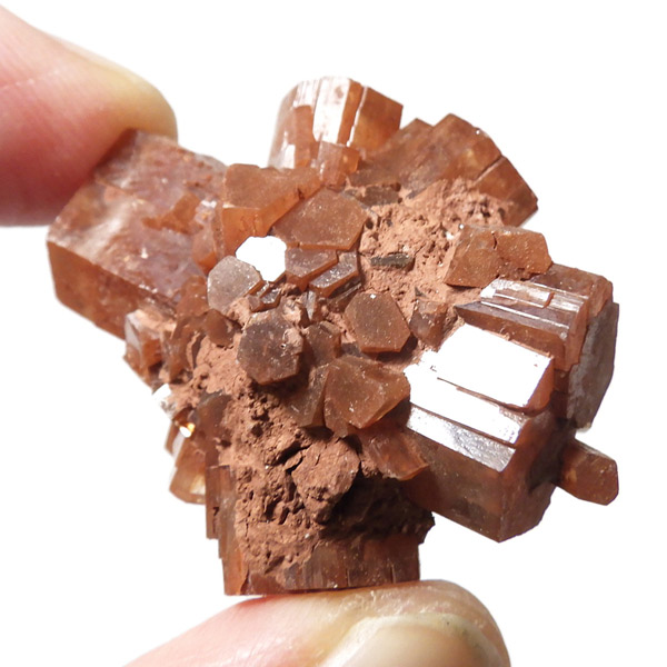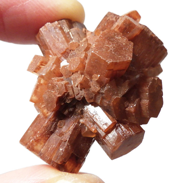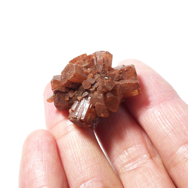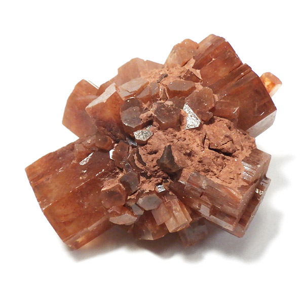 モロッコ産、アラゴナイト原石です。アラゴナイトは、最初はスペインのアラゴン地方で採れたのが名前の由来です。美しい六角柱の結晶の放射状の集合体。色味は半透明の結晶の表面に褐色が乗っている様相です。結晶の形がかわい魅力的な鉱物です。