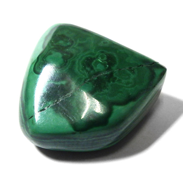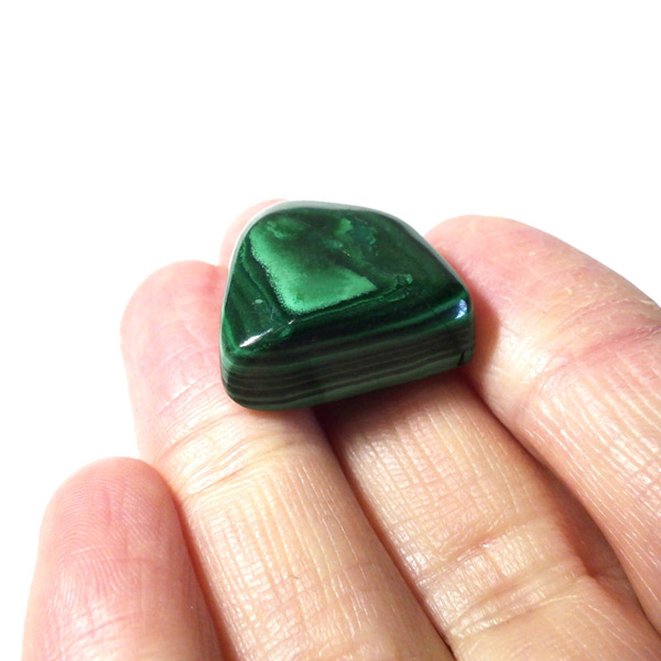 コンゴ産のマラカイト、タンブルです。濃いグリーンカラーに独特の模様を持つマラカイト。 「マラカイトグリーン」という色名になっているほど、特徴的で美しい緑色です。 マラカイトの産地はアメリカ・ロシア・コンゴ・ザンビアなどですが、中でもコンゴ産のマラカイトは非常に美しいものが採れるため、コレクターからも支持されています。