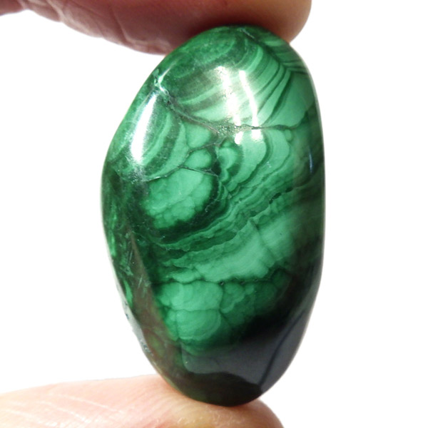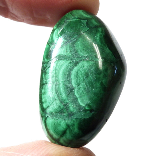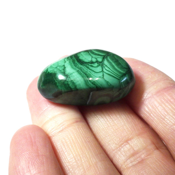 コンゴ産のマラカイト、タンブルです。濃いグリーンカラーに独特の模様を持つマラカイト。 「マラカイトグリーン」という色名になっているほど、特徴的で美しい緑色です。 マラカイトの産地はアメリカ・ロシア・コンゴ・ザンビアなどですが、中でもコンゴ産のマラカイトは非常に美しいものが採れるため、コレクターからも支持されています。