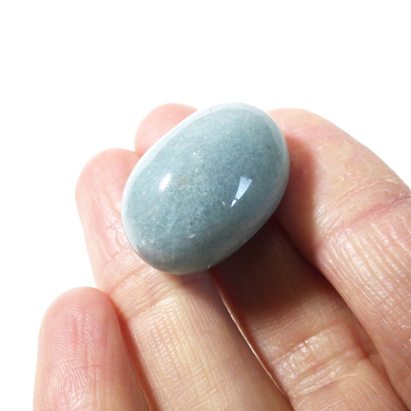 ブラジル産のトロレアイト、タンブルです。トロレアイトは非常に珍しいリン酸塩鉱物で淡青緑色から青みがかった塊で見つかり、ラズライト、スコルザライトとの混合物のため、青く色付いています。発見者のスウェーデンのトロール氏にちなんで名付けられました。トロール=妖精という意味からアセンションストーン(碧い妖精の石)とも呼ばれています。日本ではトロール石とも呼ばれています。ブルーの濃淡や、色味 がくすみカラーでかわいいです。