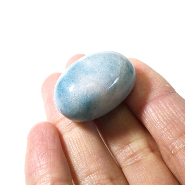ブラジル産のトロレアイト、タンブルです。トロレアイトは非常に珍しいリン酸塩鉱物で淡青緑色から青みがかった塊で見つかり、ラズライト、スコルザライトとの混合物のため、青く色付いています。発見者のスウェーデンのトロール氏にちなんで名付けられました。トロール=妖精という意味からアセンションストーン(碧い妖精の石)とも呼ばれています。日本ではトロール石とも呼ばれています。ブルーの濃淡や、色味 がくすみカラーでかわいいです。