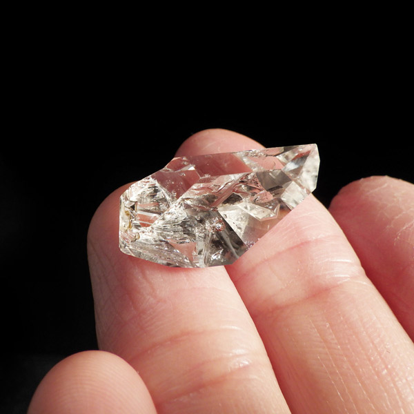 ハーキマーダイヤモンド原石です。抜群の透明度で圧巻の美しさです。キラキラと輝くその姿は、ダイヤモンドのようで、息を呑むほど素晴らしい輝きに満ちています。ハーキマーダイヤモンドはアメリカ、ニューヨーク州、ハーキマー地区でしか採掘されないダイヤのようなクリスタル。母岩の穴の中で成長し、ダイヤモンドのような両側の18面体の結晶になります。そして、ダイヤモンドのように力強い光沢感と輝きを兼ね備えているのが特長です。