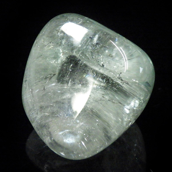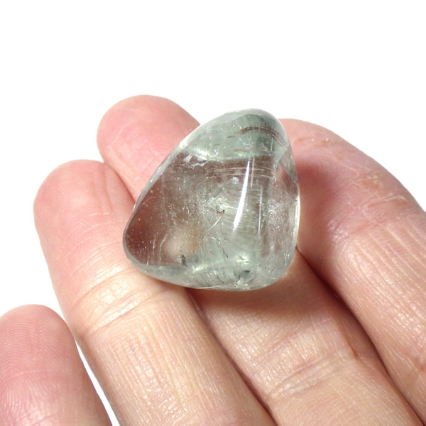 ブラジル産のブルートパーズ、タンブルです。トパーズは様々な色を持つ鉱物であり、和名を「黄玉(おうぎょく)」というように、本来は「黄色からオレンジ色」のトパーズがスタンダードなカラーとなっています。その中でも、青色を発するものがブルートパーズと呼ばれています。しかし、青色のトパーズが天然で生まれることは大変希少であり、現在はほとんど見つかることがありません。そのため、市場で流通しているブルートパーズのほとんどは、ホワイトトパーズに放射処理が施されています。今回ご用意したブルートパーズは、まさに天然のもので、大変希少価値の高いものです。