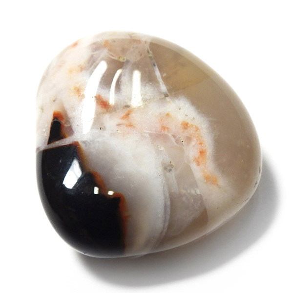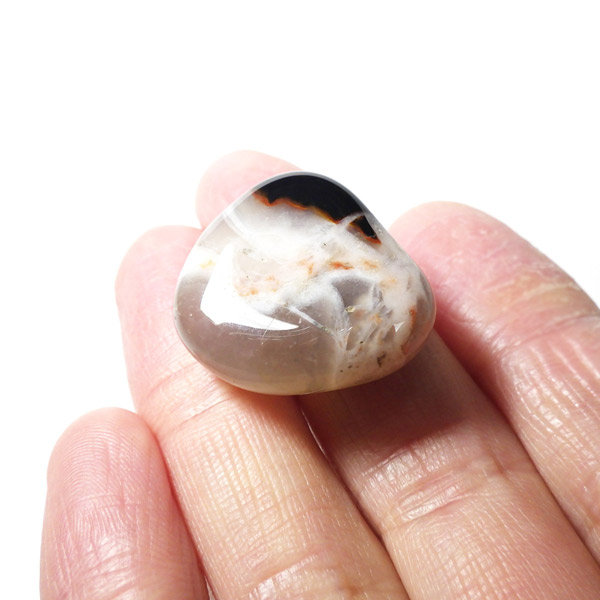 スレイマンはアゲート(瑪瑙)の中でも保護力がとても強い石で、古くから僧侶が悪魔祓いに使われてきました。 陰陽のバランス調整力に長け、過去世における深い固定観念である囚われた意識のネガティブなカルマや過去のトラウマからの解放も促します。さらにグラウディング力が強く、情緒的、肉体的なバランスを強化し、身体的エネルギーのバランスを安定させる作用がある石で、現実的にな解決へと導いてくれるといわれています。