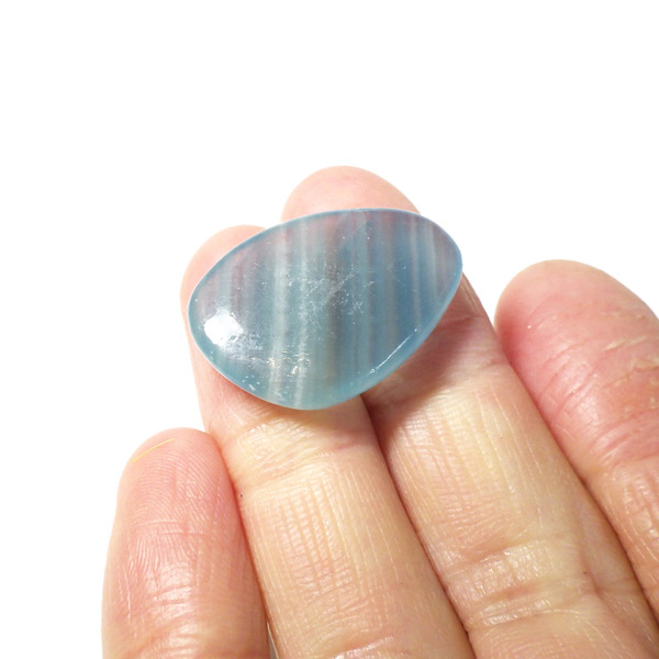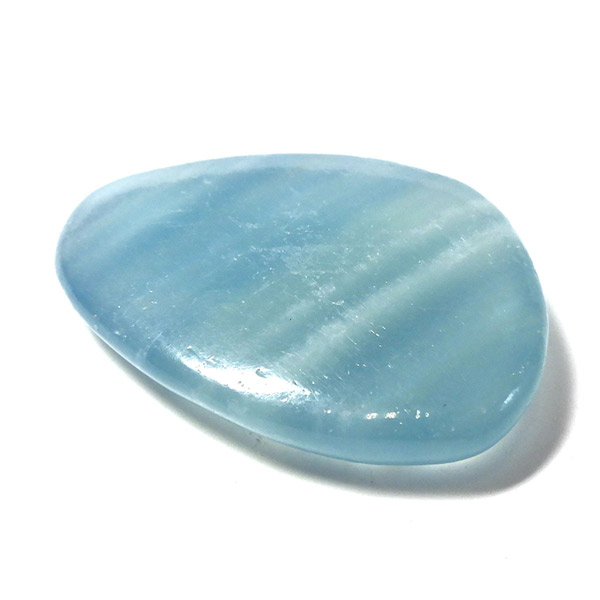 アルゼンチン産のブルーカルサイト、タンブルです。 カルサイトは、イエロー、ブルー、ピンクなど様々な色合いを持つ石です。これらの色は、鉱物内に含まれている成分により色が異なります。カルサイトの中で青色のものがブルーカルサイトと呼ばれます。ブルーカルサイトには大きく分けて「若干透明感がある鮮やかな色合い」「ミルキーで淡い色合い」の2種類に分かれます。これらは産出される場所によって異なります。ブルーカルサイトの中でもミルキータイプよりも、色味の鮮やかなタイプは産地が限られることから希少性が高くなります。その中でも特にアルゼンチンで採れるものは優れた発色からアクアティンカルサイトと特別に呼んでいます。