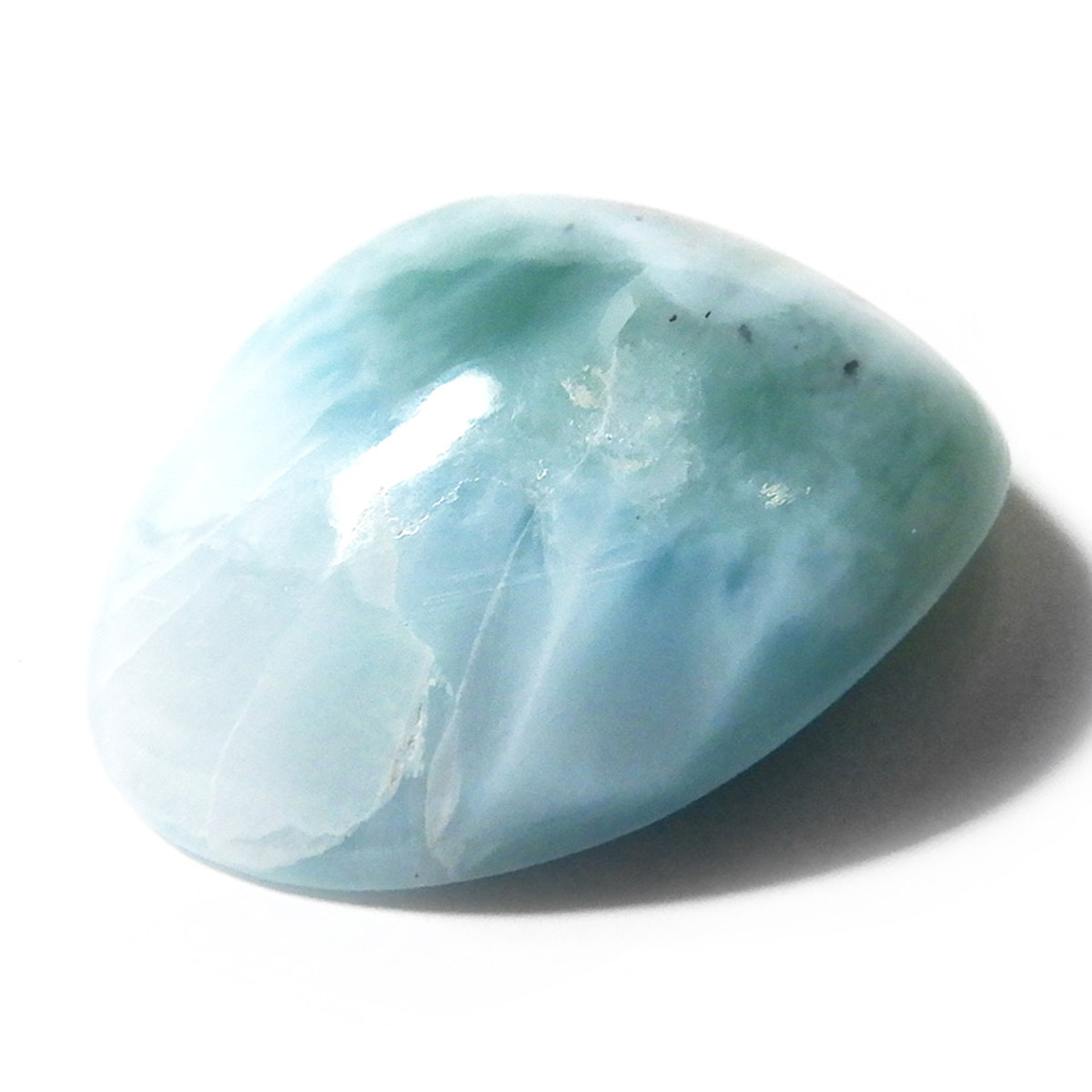 ドミニカ共和国産のラリマー、タンブルです。三大ヒーリングストーンに数えられるほど美しいラリマー、美しいカリブ海のような色合いのブルーとホワイトの模様がきれいに入っています。アクセサリーになるようなハイグレードのラリマーで撮影中に手に触れるだけでパワーを感じられました。1つでも十分癒されるのですが、複数個揃えられると気持ちが随分上がると思います。今のストレス社会には癒しが必要だと思いますので、この出会いに高品質ラリマーを是非いかがでしょうか。