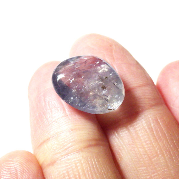 インド産のAAAアイオライト、タンブルです。アイオライトは見る角度によって色が変化するという神秘的な鉱石です。広域変成岩や接触変成岩などで発見されるケイ酸塩鉱物の一種で、多色性が強く、見る角度によって群青色から淡い枯れ草色に変化します。アイオライトの中でも、透明感があり、発色の良い大変グレードの高い希少なものをご用意しました。