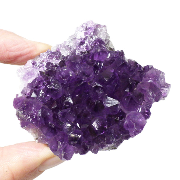 ウルグアイ産のアメジストクラスターです。一つ一つの結晶が美しく成長したアメジストです。透明感があり、上質なアメジストの証である紫の色がしっかりと入った濃紫のクラスターです。