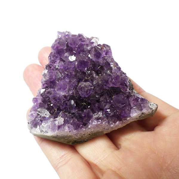 ウルグアイ産のアメジストクラスターです。一つ一つの結晶が美しく成長したアメジストです。透明感があり、上質なアメジストの証である紫の色がしっかりと入った濃紫のクラスターです。