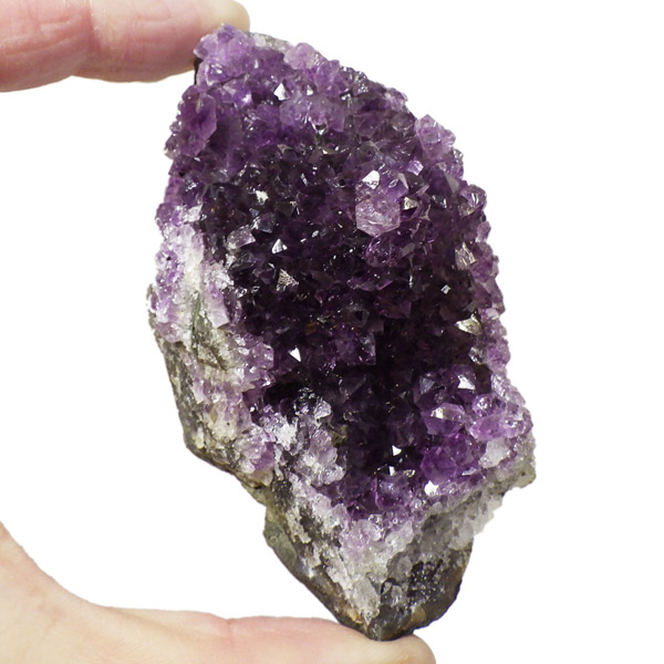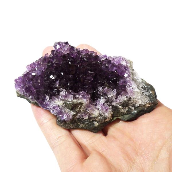 ウルグアイ産のアメジストクラスターです。一つ一つの結晶が美しく成長したアメジストです。透明感があり、上質なアメジストの証である紫の色がしっかりと入った濃紫のクラスターです。