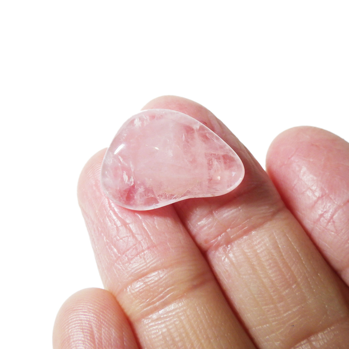 ブラジル産のローズクォーツ、タンブルです。ローズクォーツの中でも透明度が高く、発色の良いハイグレードのものです。光に透かすと内部の結晶がキラリと輝きとてもきれいです。