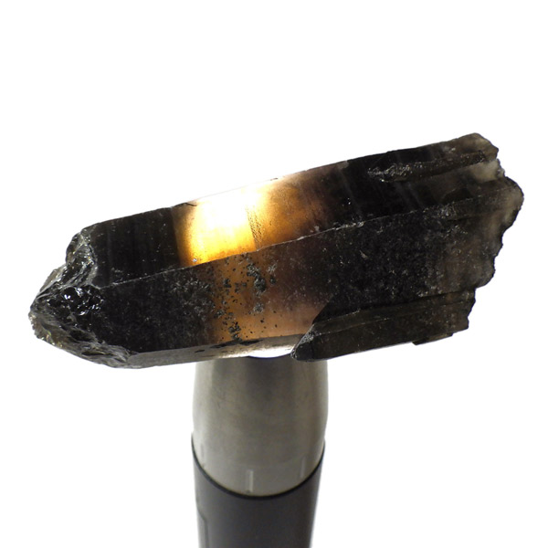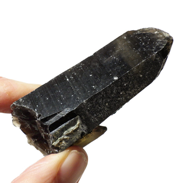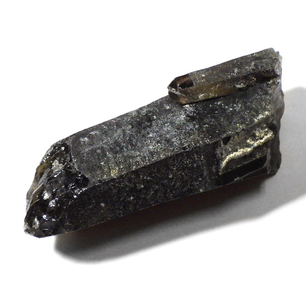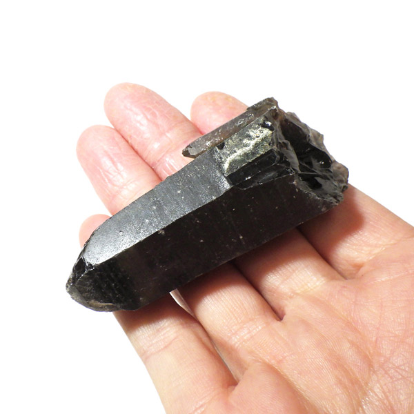内モンゴル産のモリオン原石ポイントです。 スモーキークォーツの中で、黒色が強く真っ黒な黒水晶をモリオンと呼びます。明確な境界の定義はありませんが、表面が黒光りするものをモリオンと呼んでいます。人によっては光を通すものをケアンゴームと呼ぶ場合もあります。モリオンは水晶の成長過程で微量のアルミニウムが放射性鉱物などの影響を受けると黒色に変色するといわれています。