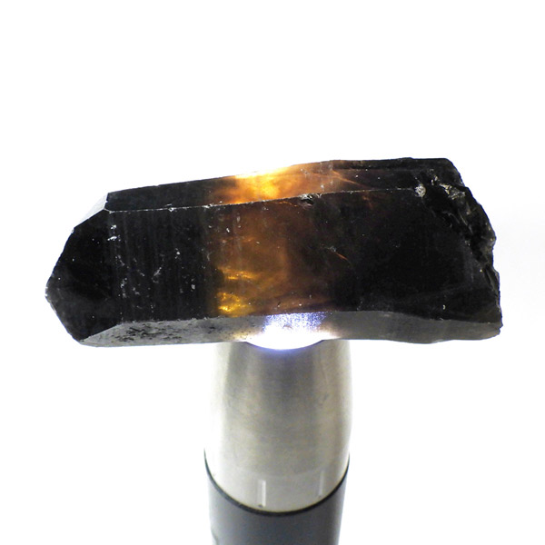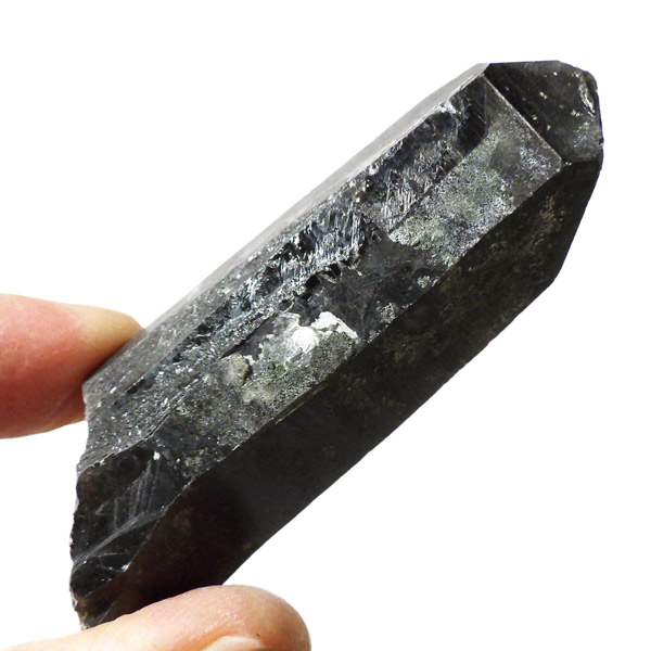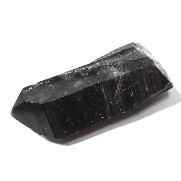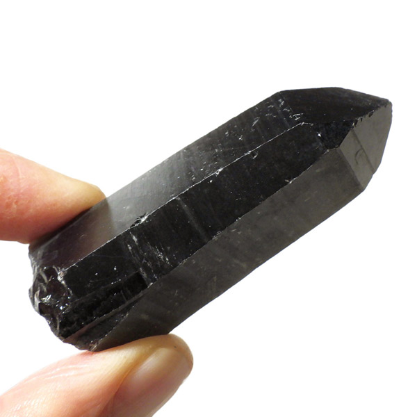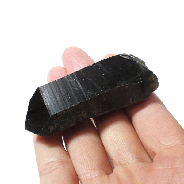 内モンゴル産のモリオン原石ポイントです。 スモーキークォーツの中で、黒色が強く真っ黒な黒水晶をモリオンと呼びます。明確な境界の定義はありませんが、表面が黒光りするものをモリオンと呼んでいます。人によっては光を通すものをケアンゴームと呼ぶ場合もあります。モリオンは水晶の成長過程で微量のアルミニウムが放射性鉱物などの影響を受けると黒色に変色するといわれています。