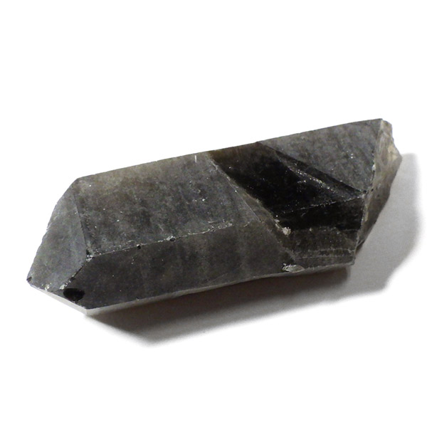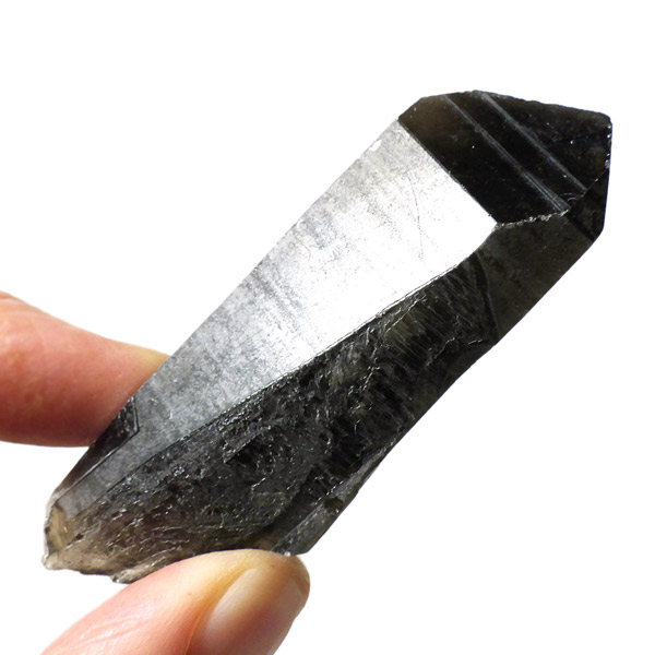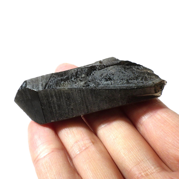 内モンゴル産のモリオン原石ポイントです。 スモーキークォーツの中で、黒色が強く真っ黒な黒水晶をモリオンと呼びます。明確な境界の定義はありませんが、表面が黒光りするものをモリオンと呼んでいます。人によっては光を通すものをケアンゴームと呼ぶ場合もあります。モリオンは水晶の成長過程で微量のアルミニウムが放射性鉱物などの影響を受けると黒色に変色するといわれています。
