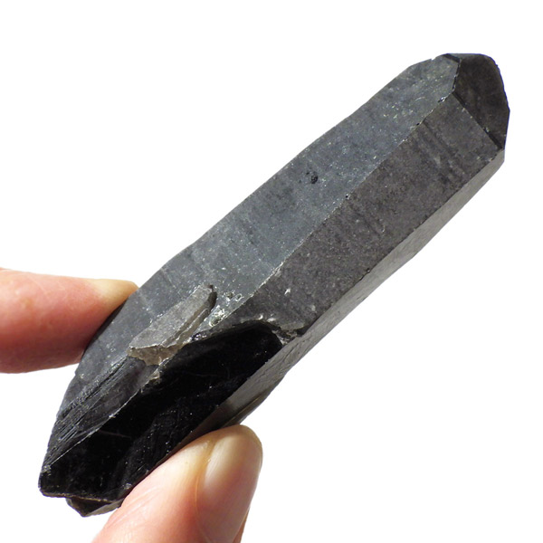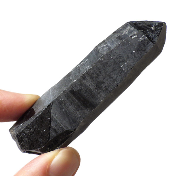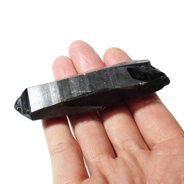 内モンゴル産のモリオン原石ポイントです。 スモーキークォーツの中で、黒色が強く真っ黒な黒水晶をモリオンと呼びます。明確な境界の定義はありませんが、表面が黒光りするものをモリオンと呼んでいます。人によっては光を通すものをケアンゴームと呼ぶ場合もあります。モリオンは水晶の成長過程で微量のアルミニウムが放射性鉱物などの影響を受けると黒色に変色するといわれています。