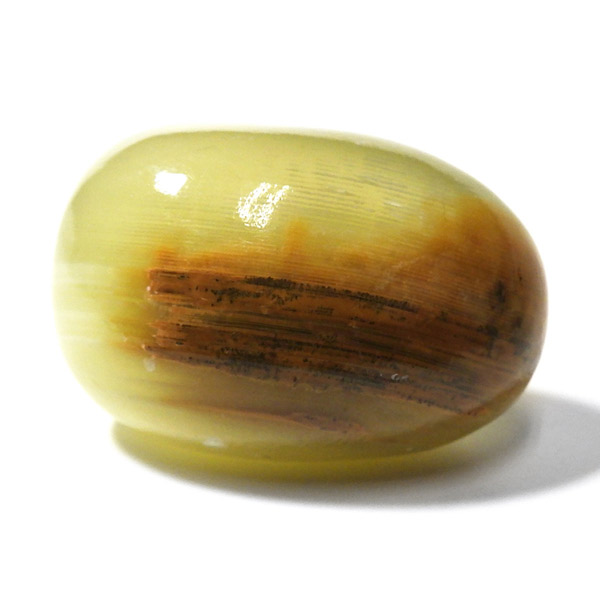 ペルー産バンデッドカルサイト、タンブルです。バンデッドは英語で縞模様という意味で、縞模様のあるカルサイトをバンデッドカルサイトと呼びます。縞状模様がオニキスに似ておりますが、オニキスは硬く、カルサイトは比較的柔らかいという特徴があります。