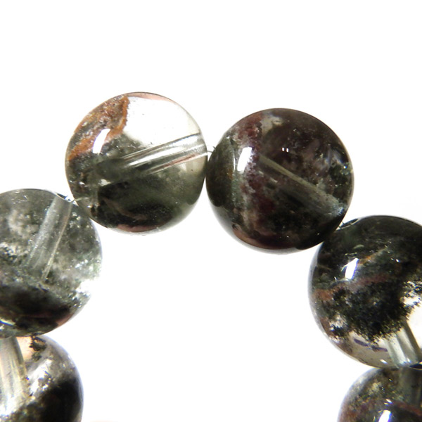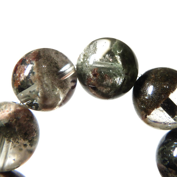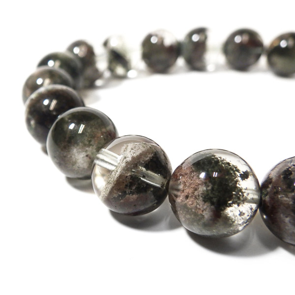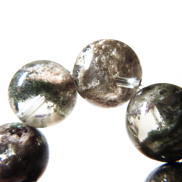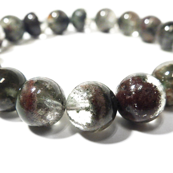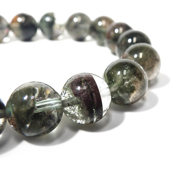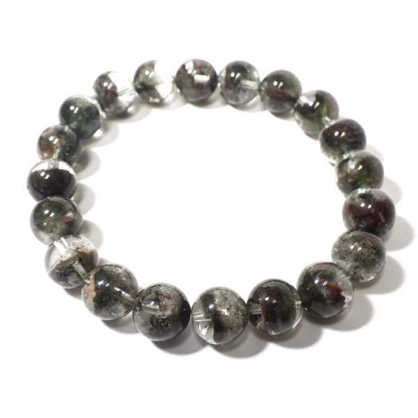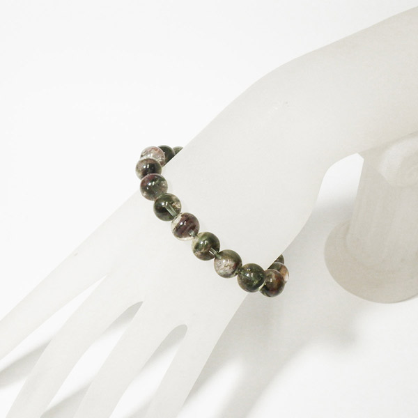 ブラジル産ガーデンクォーツのブレスレットです。ガーデンクォーツは、水晶が形成される過程で、緑や茶色の鉱物や泥岩を巻き込みながら結晶した水晶です。水晶の中に自然の風景が閉じ込められたようにも見えるため、「庭園水晶」「苔入り水晶」とも呼ばれています。透明度が高く、ガーデンクォーツ特有の鉱物が綺麗に入っております。情緒ある落ち着いた色合いで癒されますね。