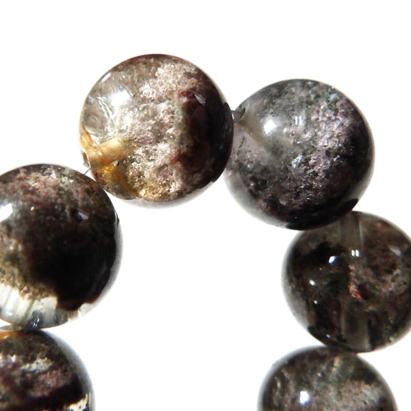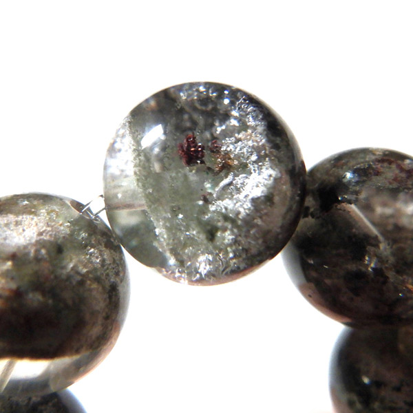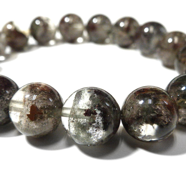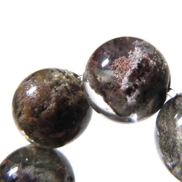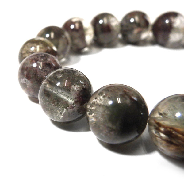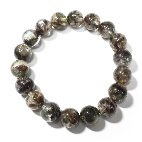 ブラジル産ガーデンクォーツのブレスレットです。ガーデンクォーツは、水晶が形成される過程で、緑や茶色の鉱物や泥岩を巻き込みながら結晶した水晶です。水晶の中に自然の風景が閉じ込められたようにも見えるため、「庭園水晶」「苔入り水晶」とも呼ばれています。透明度が高く、ガーデンクォーツ特有の鉱物が綺麗に入っております。情緒ある落ち着いた色合いで癒されますね。