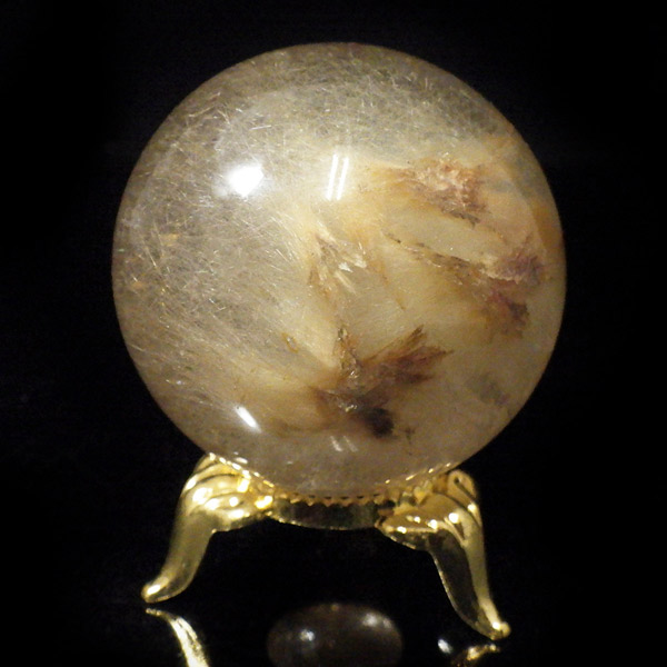 ルチルクォーツ 球 直径43mm 丸玉 スフィア ブラジル産 金属台付き