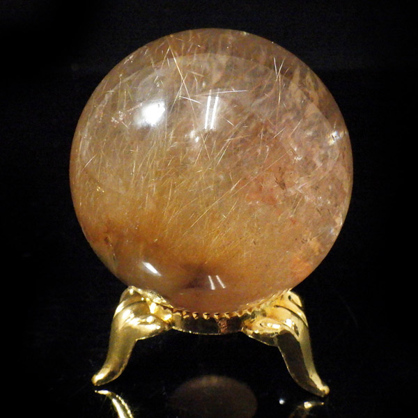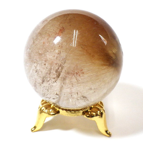 ルチルクォーツ 球 直径42mm 丸玉 スフィア ブラジル産 金属台付き