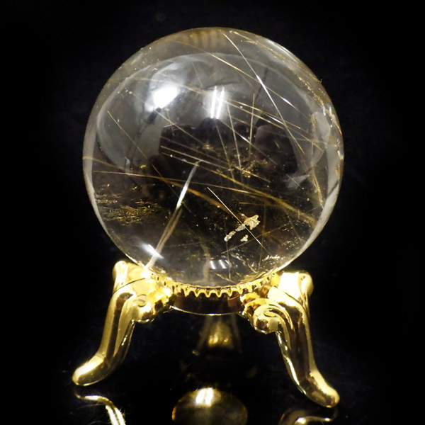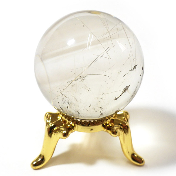 ルチルクォーツ 球 直径28mm 丸玉 スフィア ブラジル産 金属台付き