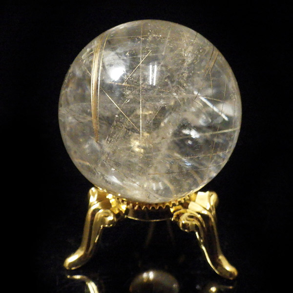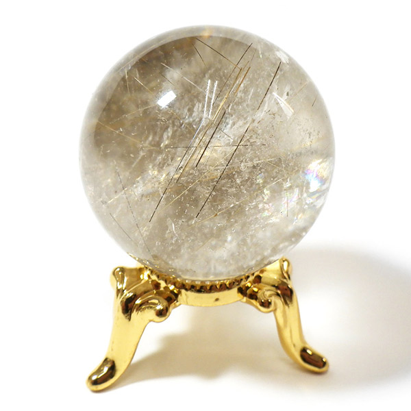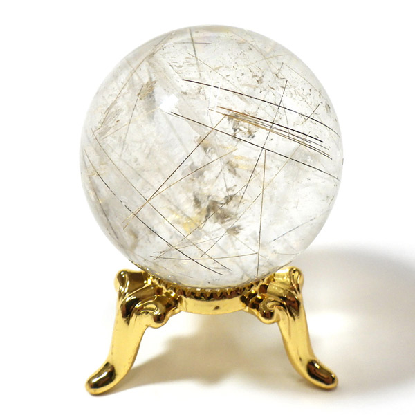 ルチルクォーツ 球 直径30mm 丸玉 スフィア ブラジル産 金属台付き