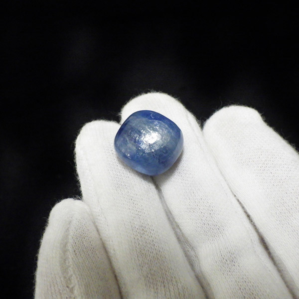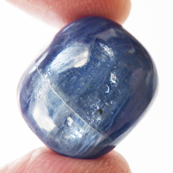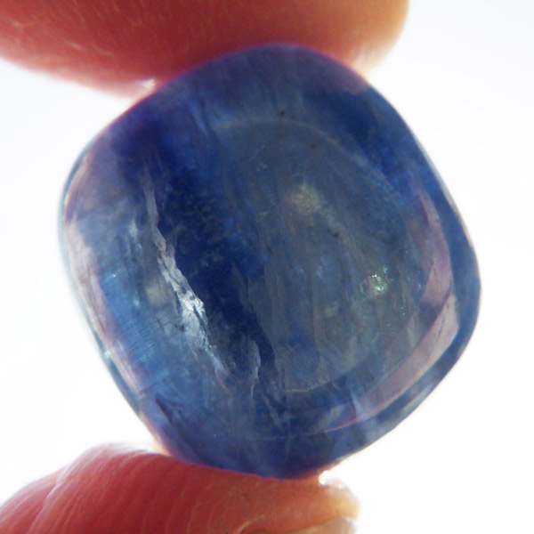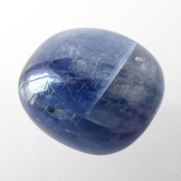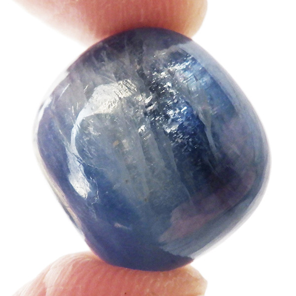 ブラジル産のカイヤナイト、タンブルです。カイヤナイトはブルーがきれいな人気の鉱物です。カイヤナイトの独特のブルーは、サファイアと同じく、含まれる鉄とチタンが要因となっています。角度を変えると光を反射し、キラキラとしたシラーの輝きとブルーのグラデーションが美しいです。