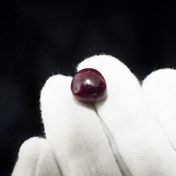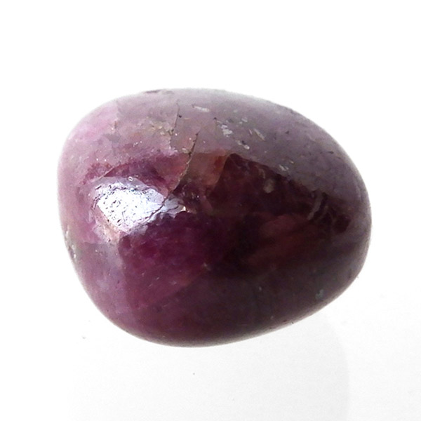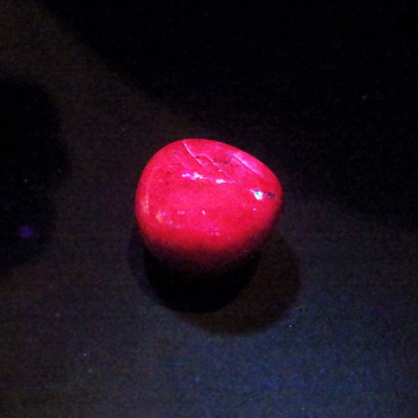 インド産ルビーのタンブルです。ルビーは三大色石としてエメラルド、サファイア、ルビーと誰もが名前を知っていますね。赤系の石、特にルビーはとても貴重な天然石です。365nmの波長のUVライトを照射することでルビーレッドが鮮やかに蛍光します。