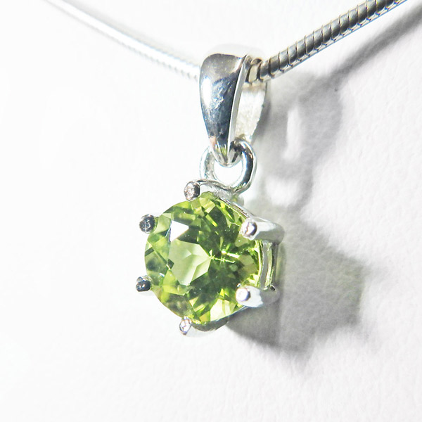 アフガニスタン産のペリドットのファセットカットペンダントトップです。大変透明度が高く、濃い色合いのペリドットの結晶を使用しております。爽やかなきらめきと色合いがとっても素敵なペリドットです。胸元のアクセントに、上品な華やかさを感じさせてくれます。