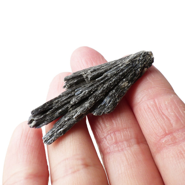 ブラジル産のブラックカイヤナイト原石です。ブラックとシルバーのカラーで光により煌めきが見られます。真っすぐと刃状に伸びる結晶がうっとりする美しさを持っています。