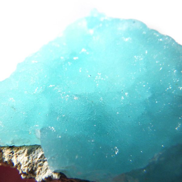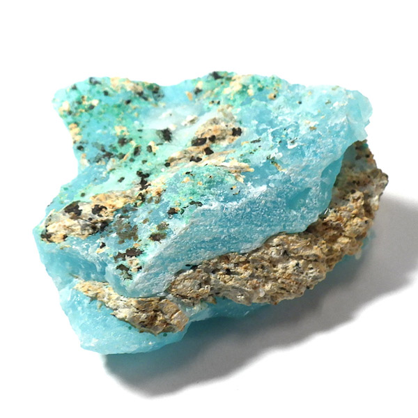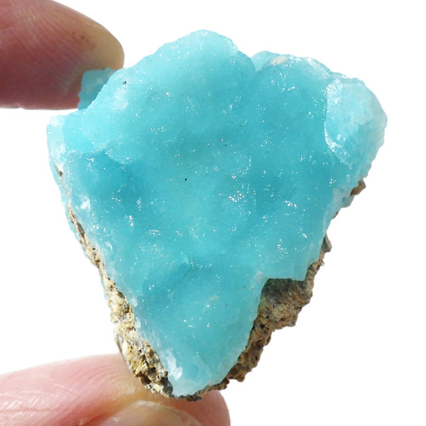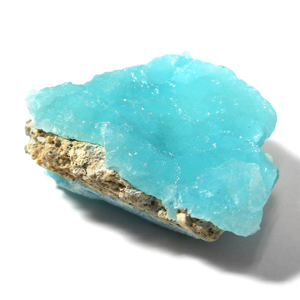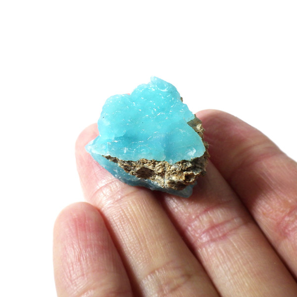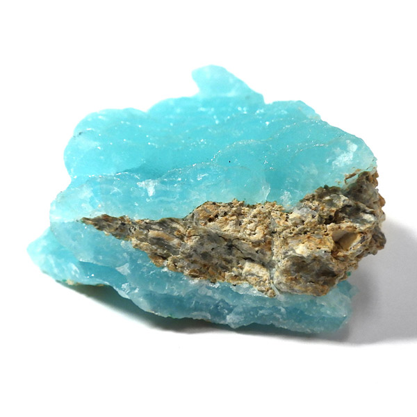 コンゴ共和国産のヘミモルファイト原石です。 表面はきれいなモコモコした結晶で爽快なスカイブルーが目を惹くヘミモルファイト。側面の隙間までモコっとした結晶が見られます。 良質なコンゴ産で、透明感を帯びた鮮明なブルーがひと際目を惹き、実に美しいです。