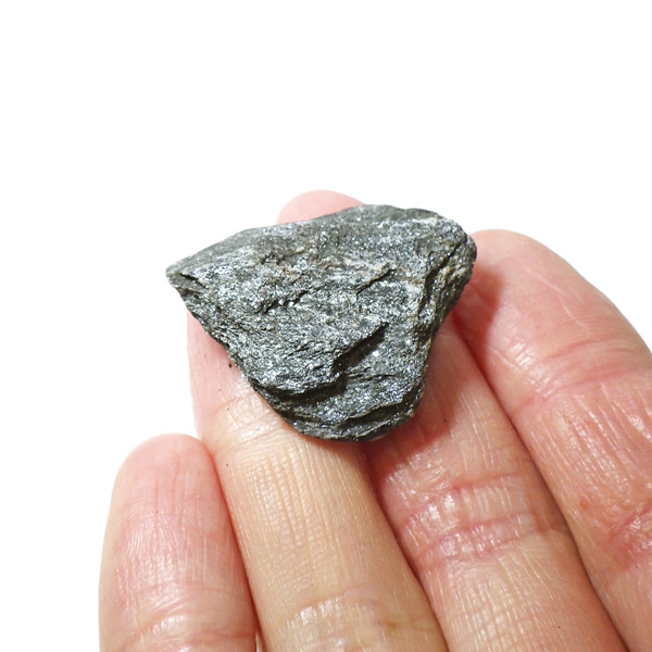 アメリカのミシガン州産のスペキュラーヘマタイト原石です。ヘマタイトは和名で赤鉄鉱。「スペキュラー」というのは、「反射鏡のような」という意味で表面で光を反射してキラキラと輝く効果です。ヘマタイト表面の細かな結晶に光が当たり、キラキラとラメのようにとてもきれいに輝きます。スペキュラーライト、鏡鉄鉱とも呼ばれます。