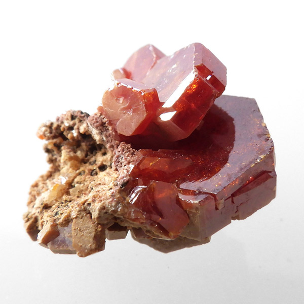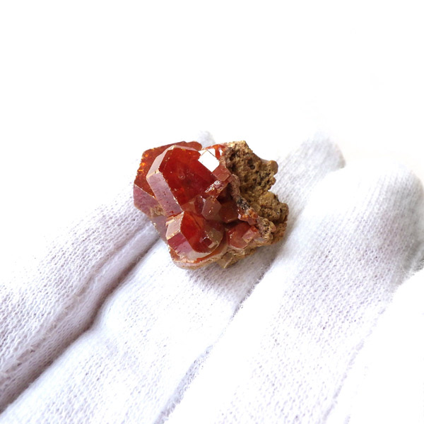 モロッコのミブラーデン鉱山より産出されたバナジナイト原石です。非常に高品質な結晶を有しています。 バナジナイトは、とても明るいオレンジ色や、濃い赤色、ワインレッドなどの色があります。 美しい六角板状の結晶は、艶やかな表面から光を非常によく反射させ、キラキラと大変魅力的です。