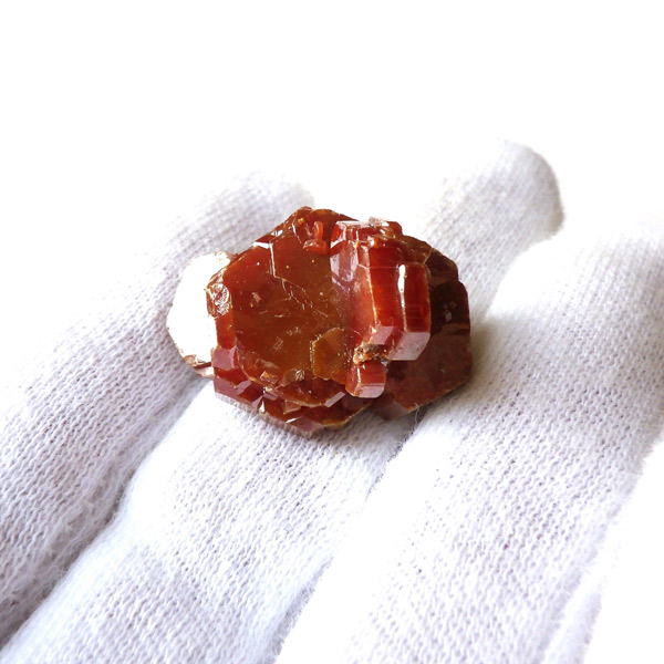 モロッコのミブラーデン鉱山より産出されたバナジナイト原石です。非常に高品質な結晶を有しています。 バナジナイトは、とても明るいオレンジ色や、濃い赤色、ワインレッドなどの色があります。 美しい六角板状の結晶は、艶やかな表面から光を非常によく反射させ、キラキラと大変魅力的です。