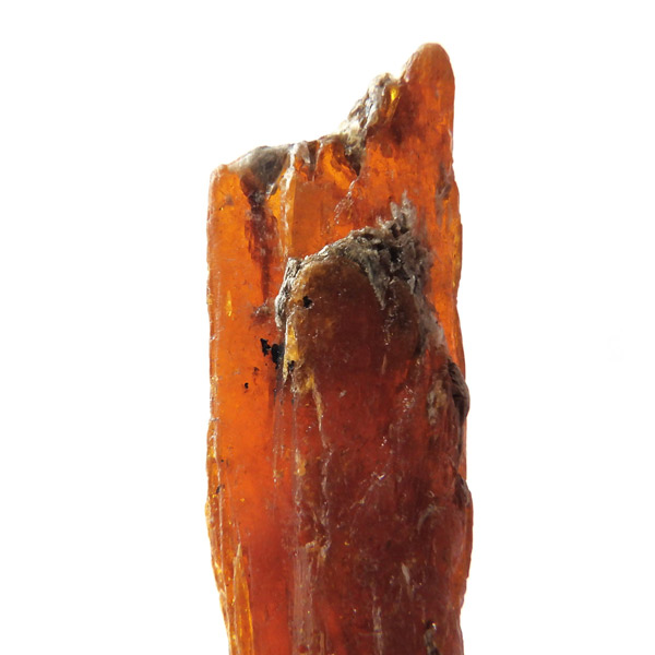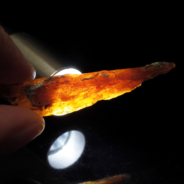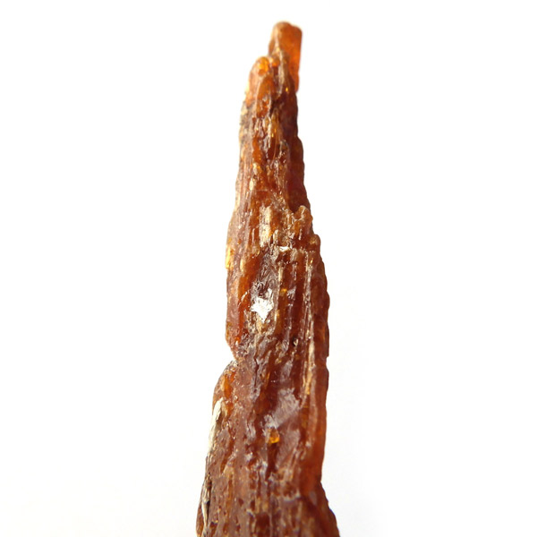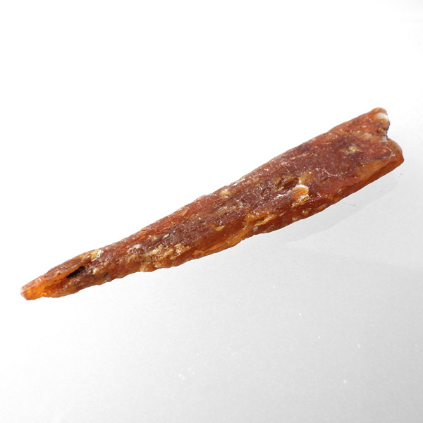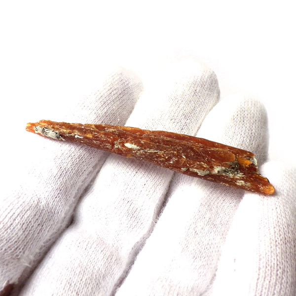 タンザニア産、オレンジカイヤナイト結晶原石です。カイヤナイトといえば、ブルーがよく知られており、他にはグリーンがたまに見かける程度でした。オレンジカイヤナイトは2007年にタンザニアで発見され 、2009年のツーソンショーで初めて現れ注目されたレア宝石です。鋭く縦に伸びる結晶と表面の光沢は、ブルー同様カイヤナイトの特徴としてオレンジカイヤナイトでも見られます。光も透過し、美しい姿を見せてくれます。