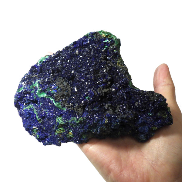 大きなサイズのモロッコ産のアズライトwithマラカイト原石です。アズライトに一部マラカイトが共生した原石です。高品質のアズライトのキラキラした結晶とマラカイトの艶やかな光沢が同時に楽しめます。アズロマラカイトとも呼ばれております。アズライトの青色とマラカイトの緑色が混ざり合ったアースカラーの芸術的な美しさを持っています。