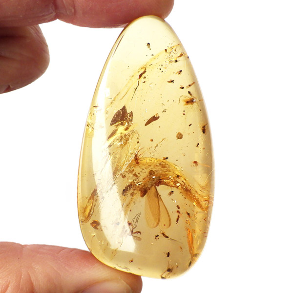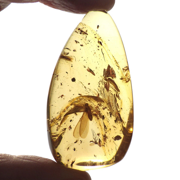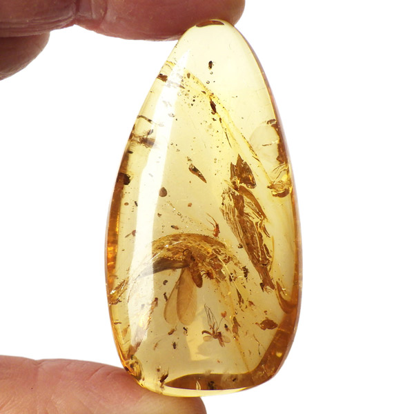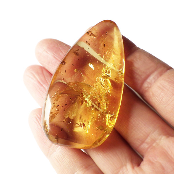コロンビア産のアンバーは、透明度が高く澄んでいるのが特徴です。大変質が良いもので透明度が高いため、内部の様子がクリアに見られます。アンバーの煌めき、内部の羽虫など見ごたえのあるお品です。琥珀は比重が軽いですが、重さを量ると20gあり、質・大きさ共に貴重な一点です。