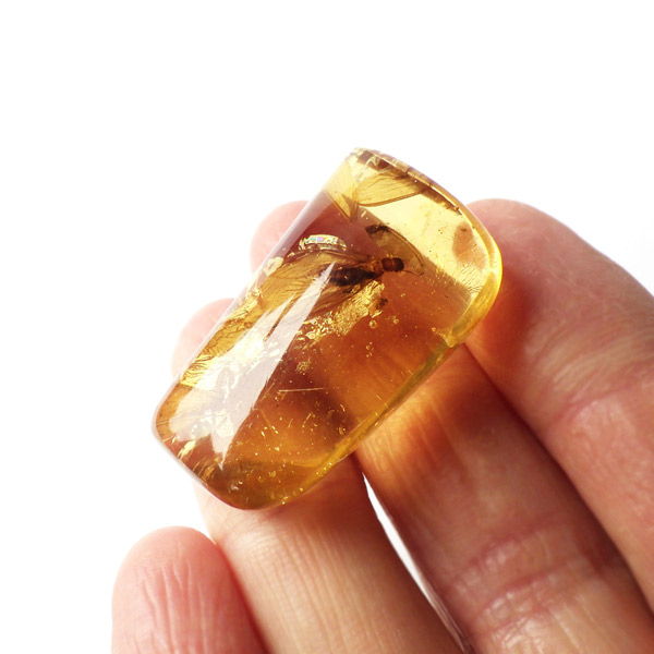 コロンビア産の綺麗なアンバー(琥珀)磨き原石です。 琥珀は古代の樹木の樹脂が悠久の時を経て化石となったもので、古くから宝飾品などに使われてきました。 コロンビア産のアンバーは、透明度が高く澄んでいるのが特徴です。大変質が良いもので透明度が高いため、内部の様子がクリアに見られます。アンバーの煌めき、内部の羽虫など見ごたえのあるお品です。
