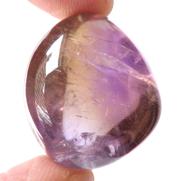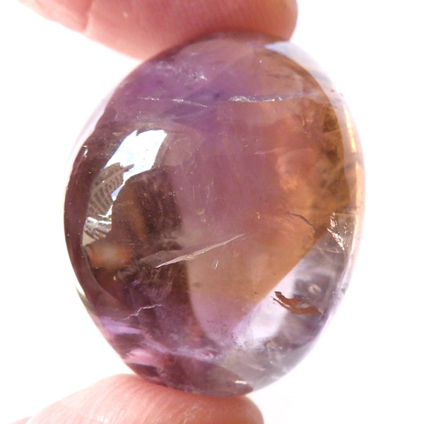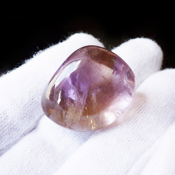 ボリビア産のAAAアメトリン、タンブルです。アメトリンはアメジストとシトリンが混ざり合った石です。天然のアメトリンは極々限定された条件下でしか生成されません。透明度も抜群で、濃いアメジストとシトリンのカラーが大変美しいです。水晶の透明部分も見られ、透明~パープル~イエロー~へのグラデーションは、まさに息を飲むほど美しいです。また、アメトリンを照らす光の種類や、タンブルの角度によって、濃く見えたり薄く見えたり、青っぽく見えたり赤っぽく見えたり、見ていて飽きることがありません。アメジストとシトリンの二つの顔を併せ持った魅力的な水晶です。