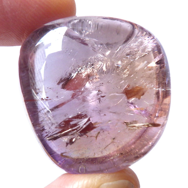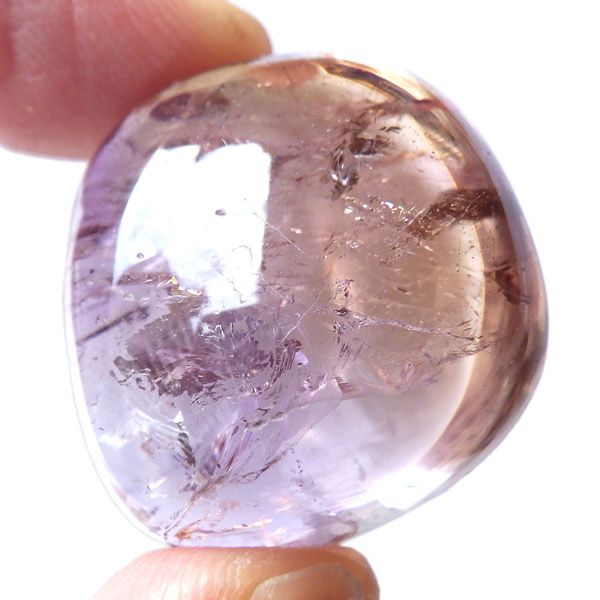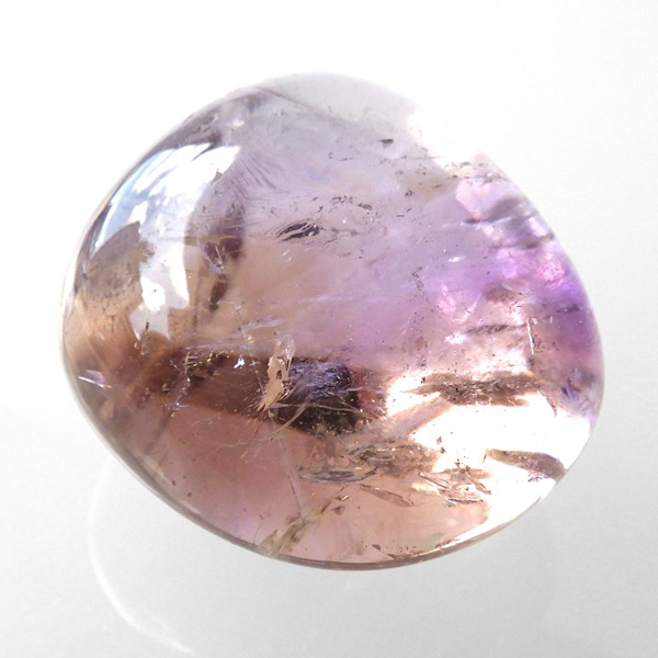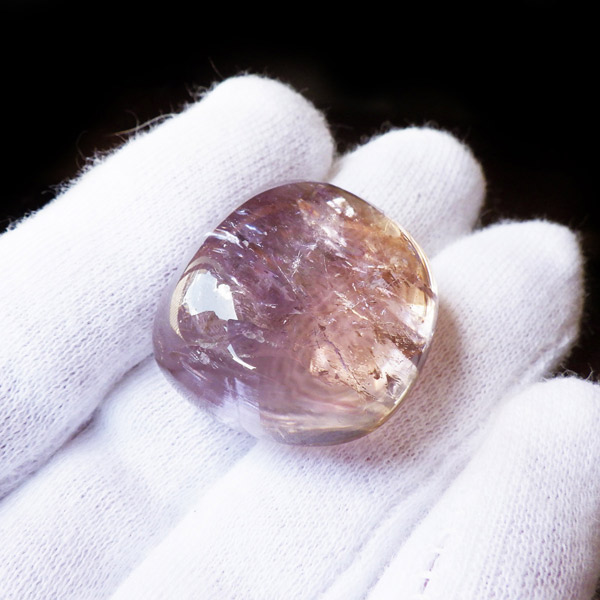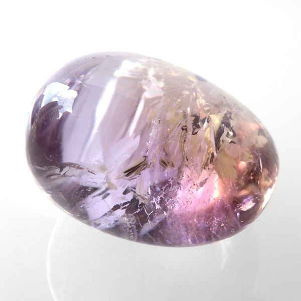 ボリビア産のAAAアメトリン、タンブルです。アメトリンはアメジストとシトリンが混ざり合った石です。天然のアメトリンは極々限定された条件下でしか生成されません。透明度も抜群で、濃いアメジストとシトリンのカラーが大変美しいです。水晶の透明部分も見られ、透明~パープル~イエロー~へのグラデーションは、まさに息を飲むほど美しいです。また、アメトリンを照らす光の種類や、タンブルの角度によって、濃く見えたり薄く見えたり、青っぽく見えたり赤っぽく見えたり、見ていて飽きることがありません。アメジストとシトリンの二つの顔を併せ持った魅力的な水晶です。