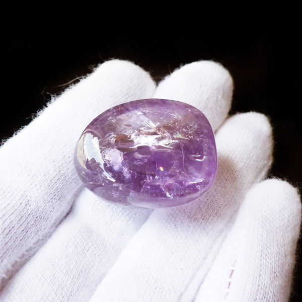 ボリビア産のAAAアメトリン、タンブルです。アメトリンはアメジストとシトリンが混ざり合った石です。天然のアメトリンは極々限定された条件下でしか生成されません。透明度も抜群で、濃いアメジストとシトリンのカラーが大変美しいです。水晶の透明部分も見られ、透明~パープル~イエロー~へのグラデーションは、まさに息を飲むほど美しいです。また、アメトリンを照らす光の種類や、タンブルの角度によって、濃く見えたり薄く見えたり、青っぽく見えたり赤っぽく見えたり、見ていて飽きることがありません。アメジストとシトリンの二つの顔を併せ持った魅力的な水晶です。