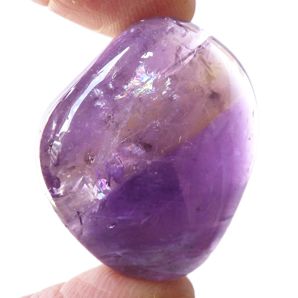 ボリビア産のAAAアメトリン、タンブルです。アメトリンはアメジストとシトリンが混ざり合った石です。天然のアメトリンは極々限定された条件下でしか生成されません。透明度も抜群で、濃いアメジストとシトリンのカラーが大変美しいです。水晶の透明部分も見られ、透明~パープル~イエロー~へのグラデーションは、まさに息を飲むほど美しいです。また、アメトリンを照らす光の種類や、タンブルの角度によって、濃く見えたり薄く見えたり、青っぽく見えたり赤っぽく見えたり、見ていて飽きることがありません。アメジストとシトリンの二つの顔を併せ持った魅力的な水晶です。