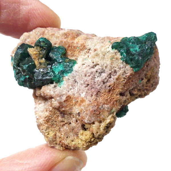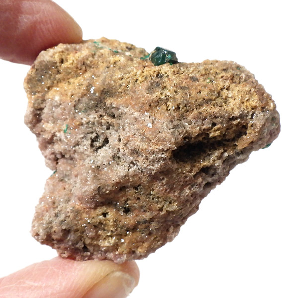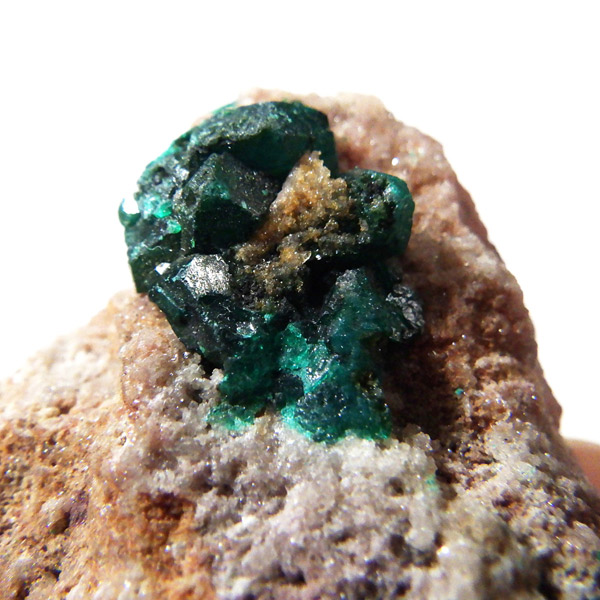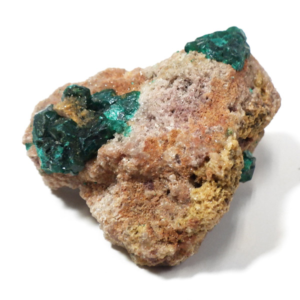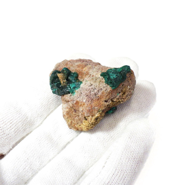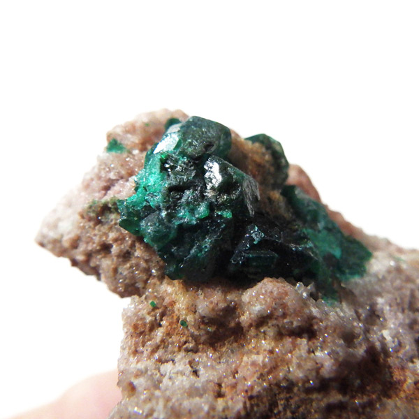 コンゴ産のダイオプテーズ原石です。ダイオプテーズは、美しい翠緑色が魅力的な石で、和名は「翠銅鉱」と言います。1785年に最初にカザフスタンで発見され、とても深く鮮やかなグリーンが特徴で、当時はエメラルドと間違われました。その後、エメラルドと成分が異なることが確認され、ダイオプテーズと名づけられました。銅にまつわる副産物で、ダイオプテーズそのものでも希少性が高く、高価な鉱物です。