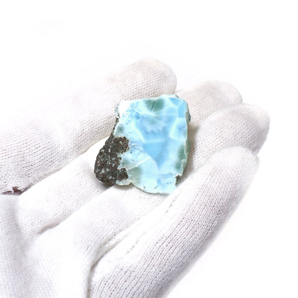 ドミニカ共和国産のラリマー、ポリッシュスライス原石です。三大ヒーリングストーンに数えられるほど美しいラリマー、美しいカリブ海のような色合いのブルーとホワイトの模様がきれいに入っています。原石の表面は磨きをかけております。優しい気持ちになるような癒されるカラーのラリマー原石です。