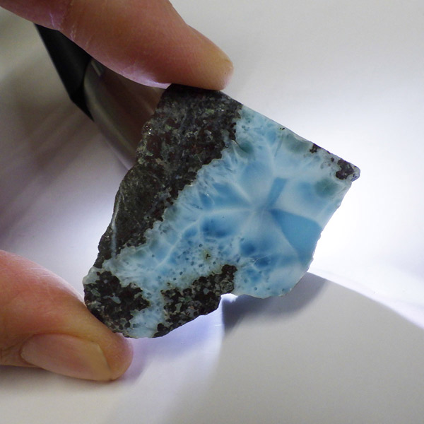 ドミニカ共和国産のラリマー、ポリッシュスライス原石です。三大ヒーリングストーンに数えられるほど美しいラリマー、美しいカリブ海のような色合いのブルーとホワイトの模様がきれいに入っています。原石の表面は磨きをかけております。優しい気持ちになるような癒されるカラーのラリマー原石です。