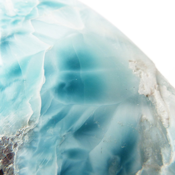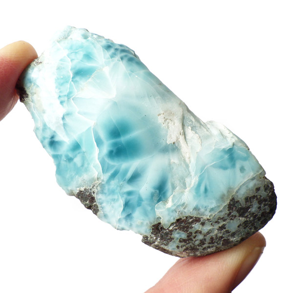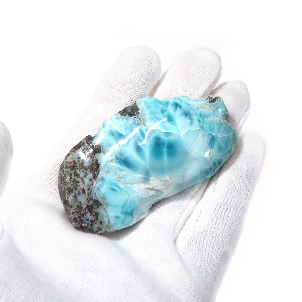 ドミニカ共和国産のラリマー、ポリッシュスライス原石です。三大ヒーリングストーンに数えられるほど美しいラリマー、美しいカリブ海のような色合いのブルーとホワイトの模様がきれいに入っています。原石の表面は磨きをかけております。優しい気持ちになるような癒されるカラーのラリマー原石です。